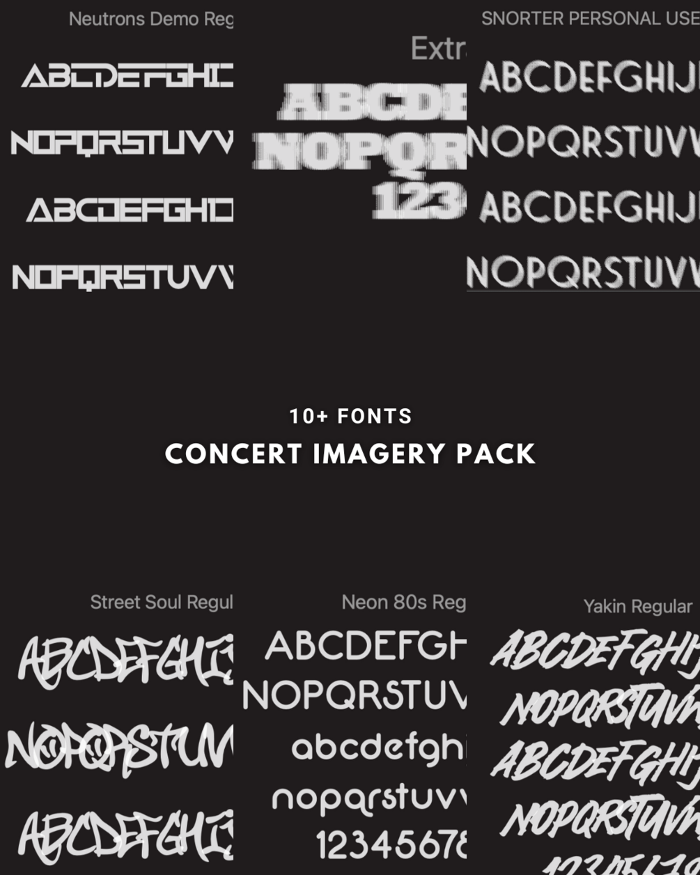 50+ Concert Images, 20+ textures, and 10+ fonts -- Buy Now to begin creating!
